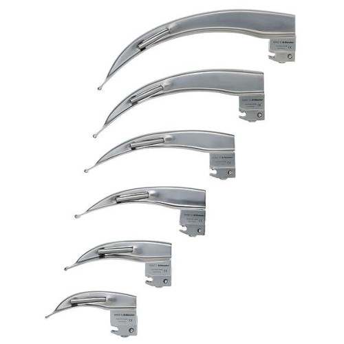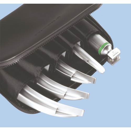 • Con lámpara de xenón XL o LED 3,5 V o 2,5 V para una luz blanca e intensa. • Lámpara integrada en el tubo con contacto metálico, para facilitar la esterilización de la pala. • Transmisión óptima de la luz gracias a la fibra óptica, con haces de fibra especialmente resistentes. • Palas F.O. Macintosh y Miller con fibra óptica integrada y posibilidad de pala F.O. Macintosh con fibra óptica desmontable. • Vida útil prolongada con ciclos de esterilización en autoclave a 134° C durante 5 minutos*. • Palas de acero inoxidable con superficie tratada de fácil limpieza. • Formas de pala especiales que ofrecen una excelente visión de las cuerdas vocales y la epiglotis y facilitan la inserción del tubo. • Posibilidad de elegir entre mangos cargadores o mangos para pilas tipo AA o tipo C no recargables o bien para utilizar con el cargador ri-charger® L. • Todas las palas son compatibles con mangos que cumplan la norma ISO 7376. • Selección de estuches y bolsa para combinaciones individuales de hasta cinco palas y un mango.