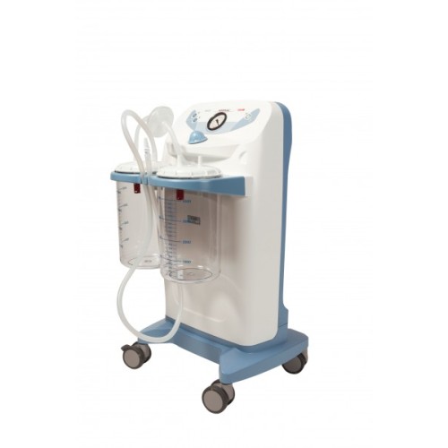 - Aspirador de uso hospitalario para la aspiración de líquidos corporales orales, nasales y traqueales, y para aplicaciones en ginecología y dermatología (liposucción). - Con soporte de ruedas. - Peso: 13Kg. - Tamaño: 46x85x42cm.